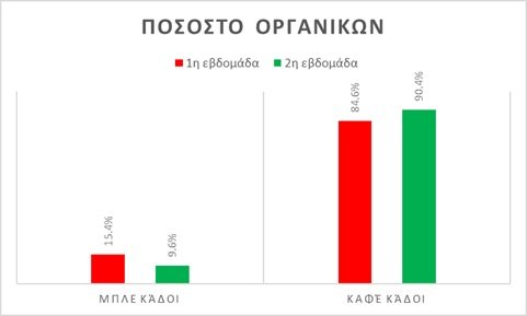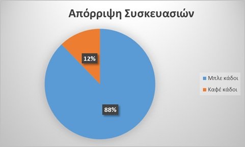 Το 88% των συσκευασιών κατέληξε σωστά στον μπλε κάδο, ενώ 87% των οργανικών κατέληξε στον καφέ.