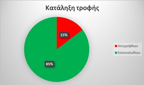 Το 85% του φαγητού καταναλώθηκε, ενώ το 15% απορρίφθηκε, παρότι ήταν βρώσιμο.