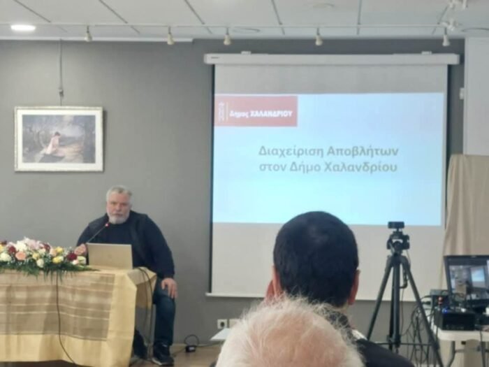 Ο κ. Λυμπεράτος παρουσίασε όλες τις καλές πρακτικές που εφαρμόζει ο Δήμος Χαλανδρίου στην κατεύθυνση της κυκλικής οικονομίας, με έμφαση στα σημαντικά πεπραγμένα στη διαχείριση αλλά και στην αποτροπή παραγωγής βιοαποβλήτων.