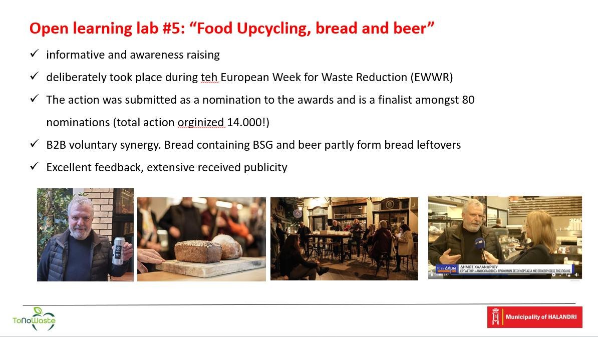Τέλος, οι συντονιστές του προγράμματος ξεναγήθηκαν από τη συνεργάτιδα επικοινωνίας του Δήμου κ. Βάλια Χριστούλη στις επιχειρήσεις BREAD BC και Ζυθοποιία Αναστασίου, όπου οι ιδιοκτήτες Περικλής Βούρθης και Φώτης Αναστασίου τους μίλησαν για τα προϊόντα της ανωκύκλωσης (ψωμί από βύνη και μπύρα από ψωμί).