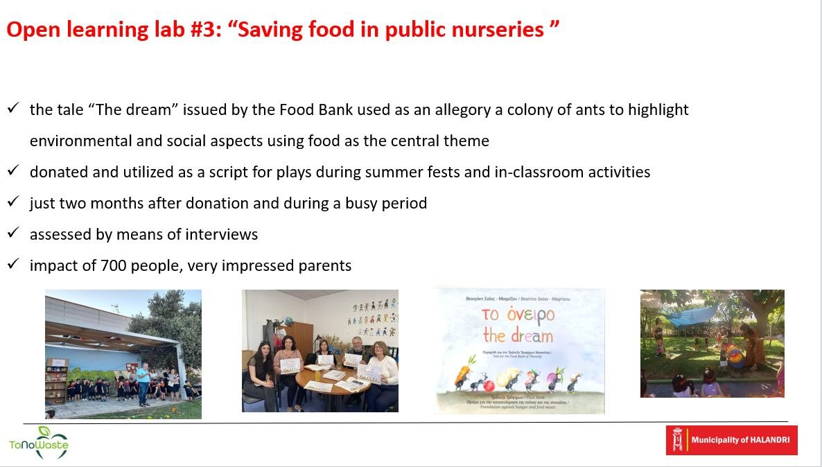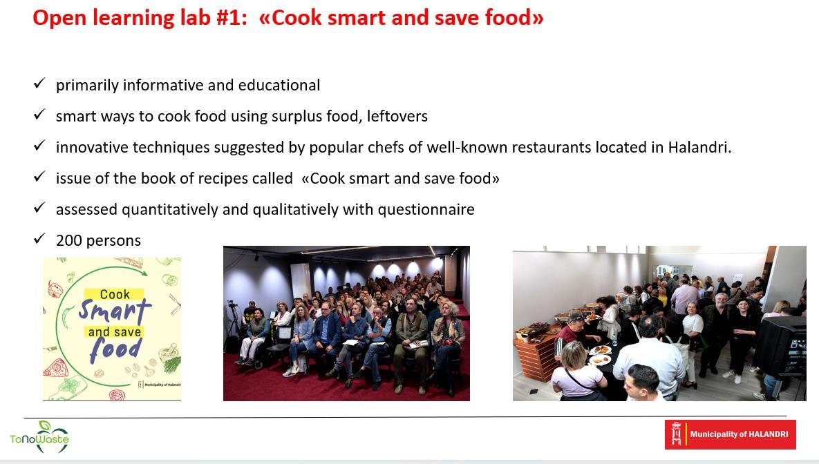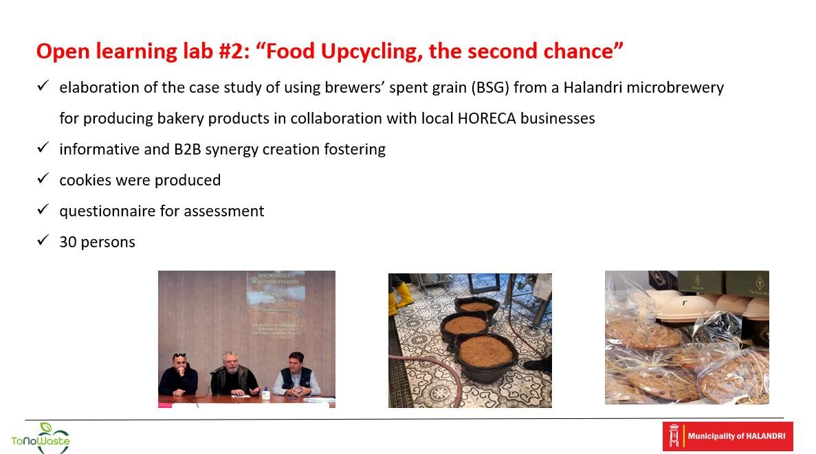 Τη δεύτερη μέρα, παρουσιάστηκαν οι δράσεις της Μονάδας του Δήμου Χαλανδρίου τον τελευταίο ενάμισι χρόνο. Αναφέρθηκε η ιδιαίτερα πλούσια δραστηριότητά της σε όλους τους τομείς, με ενημερωτικές καμπάνιες και εργαστήρια, δουλειά στα σχολεία και στους παιδικούς σταθμούς, καινοτόμες πρωτοβουλίες στην εστίαση και σε κάθε τομέα που αφορά το θέμα της πρόληψης δημιουργίας τροφικών αποβλήτων σε επίπεδο Δήμου. Επίσης έγιναν πολύ χρήσιμες συζητήσεις με τους άλλους εταίρους για τη συνέχιση και αναβάθμιση της συνεργασίας.